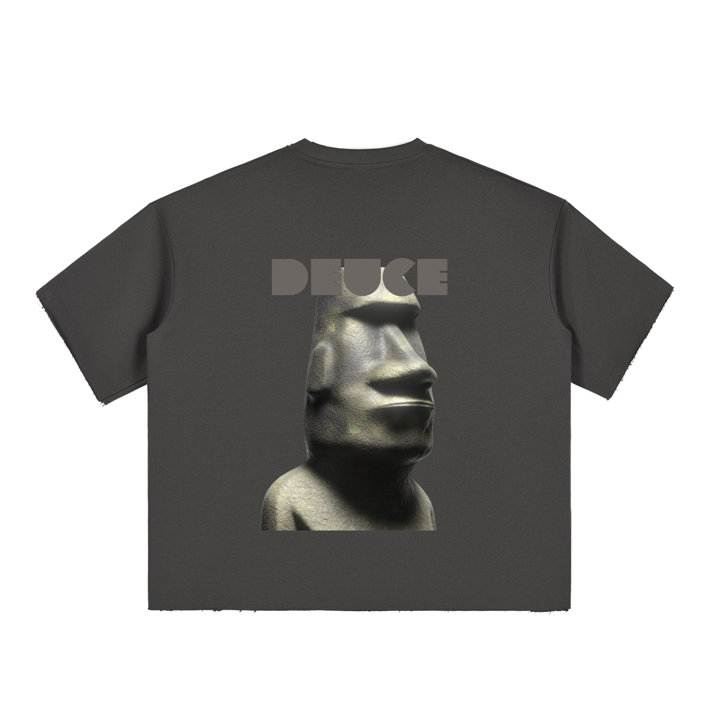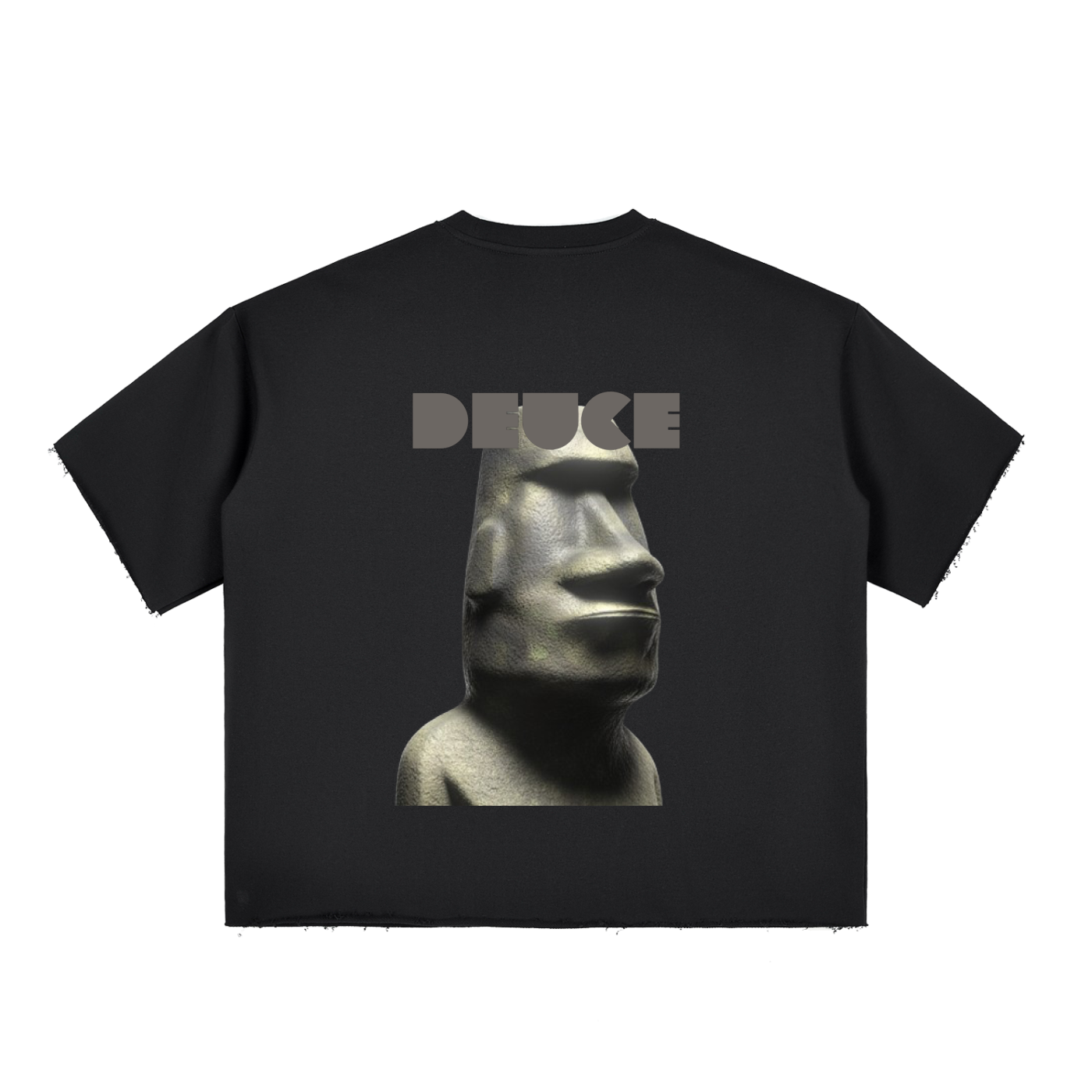DEUCE MOAI - Boxy Half-Sleeve Raw-Edge T-Shirt